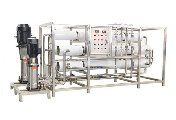 雙級反滲透設備是在反滲透一級過程中,通過調節水滲透的pH值,通過兩級高壓泵將其泵入反滲透系統二級的過程。